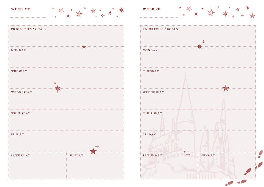 The Harry Potter: Welcome To Hogwarts™ Traveler’s Notebook Set is the perfect way to record all of your thoughts, plans, projects, and magical adventures. The set includes a beautiful cover with the Hogwarts™ crest, a lined notebook, an undated weekly planner notebook, and a travel wallet organizer with card slots and zippered storage pocket.